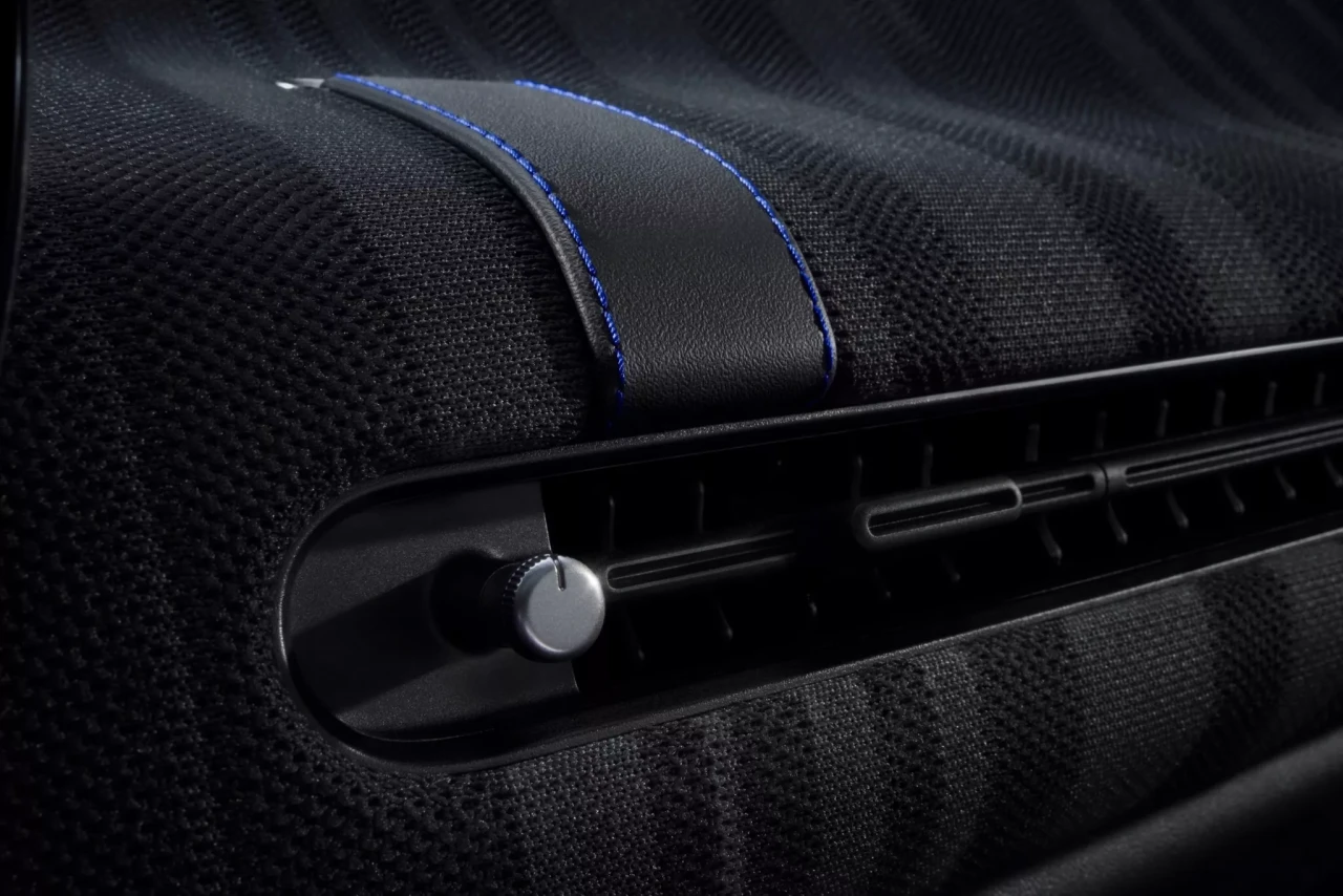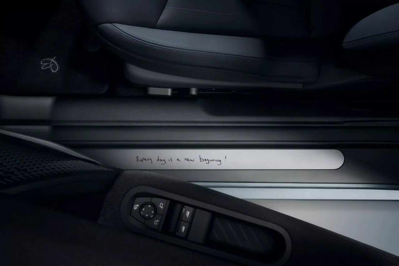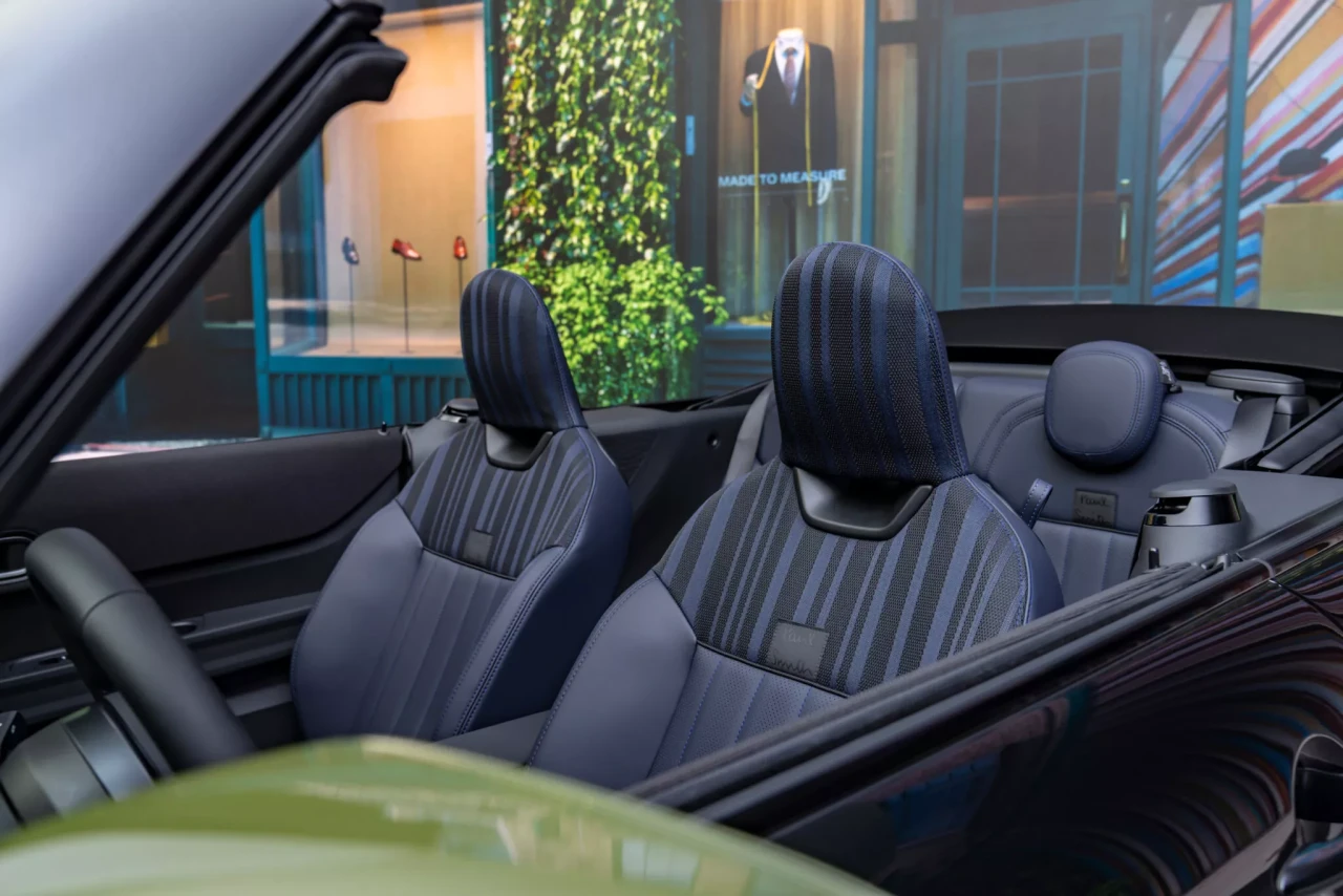Купето предлага спортни седалки Nightshade Blue. Таблото и облицовките на вратите са покрити с плетена текстура, разработена специално за изданието. Signature Stripe продължава върху волана, докато постелките носят стилизирано зайче – емблематичен елемент на Смит.