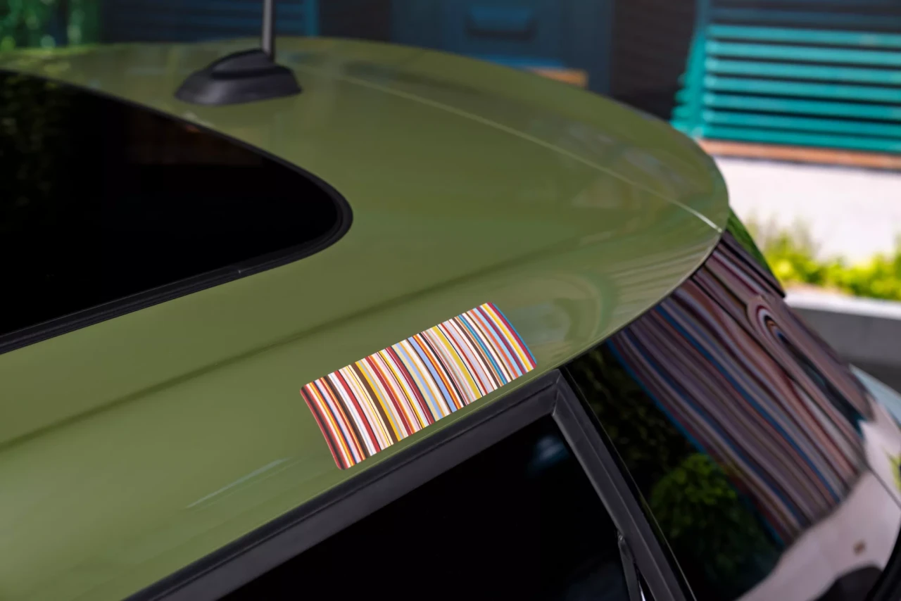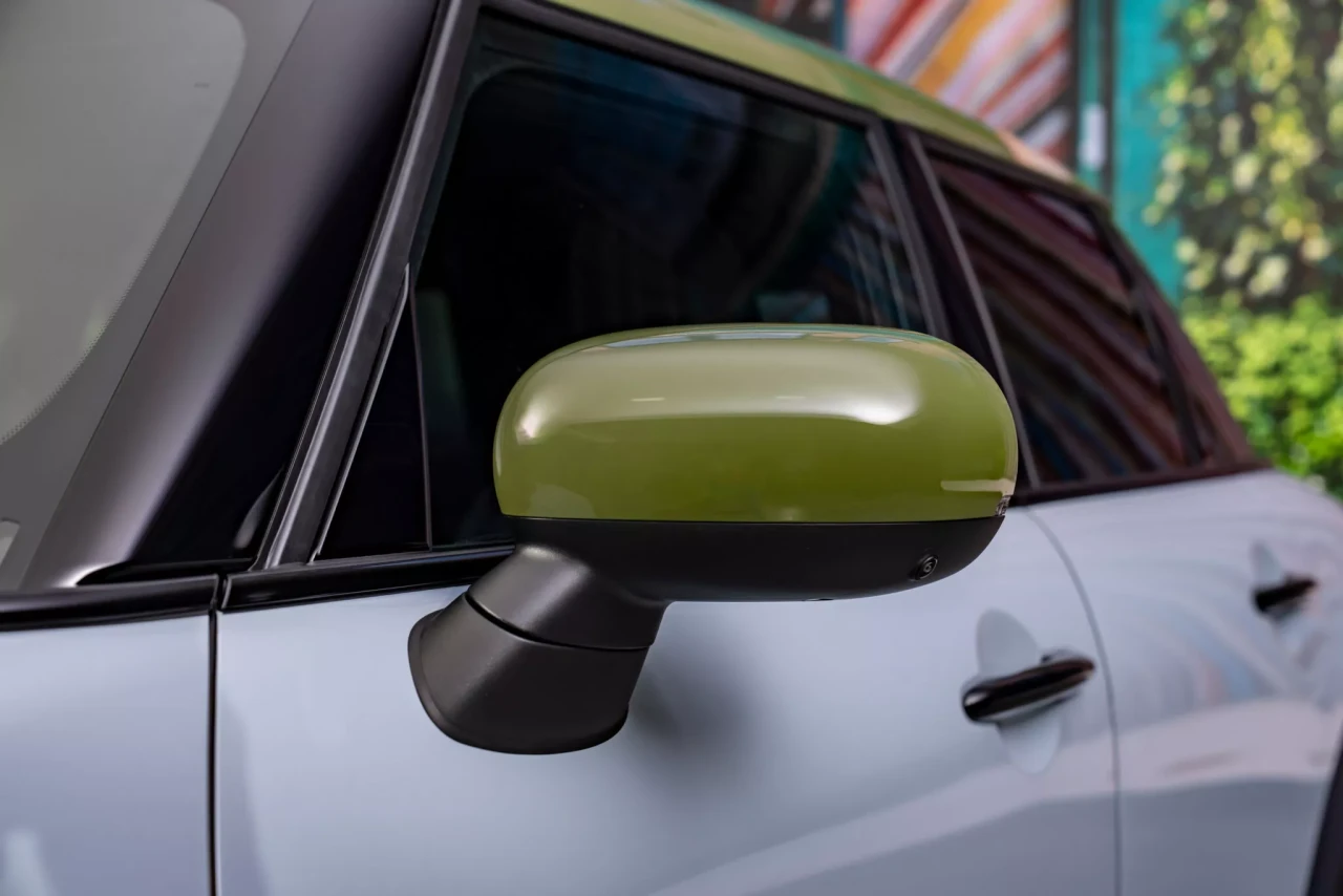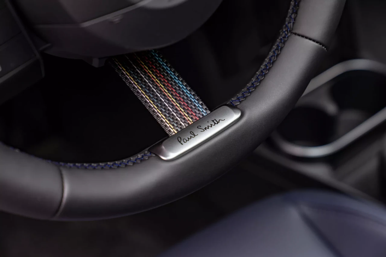 Клиентите могат да изберат и Midnight Black Metallic за по-класически вид. Огледалата, обрамчването на решетката и 18-инчовите джанти са в Nottingham Green. По желание покривът може да бъде в същия нюанс. Версиите с 3 и 5 врати носят Signature Stripe върху покрива, а подписът на Paul Smith стои върху задния капак.