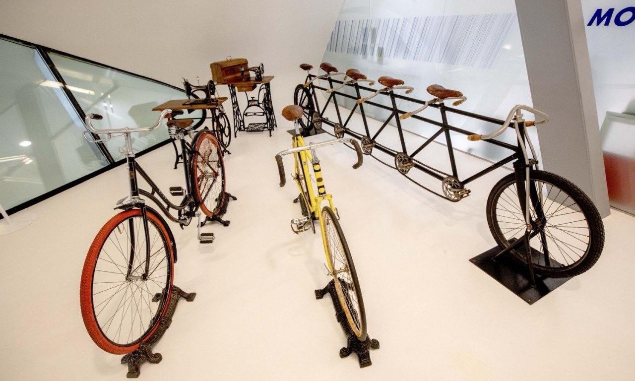 Маршрутът започва с шевни машини и велосипеди от XIX в. Финалът показва електрически и авангардни прототипи. Така посетителят проследява развитието на мобилността през три века.