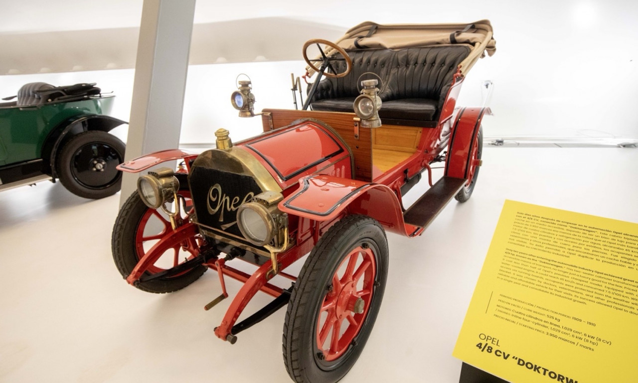 Първият автомобил Patent-Motorwagen System Lutzmann (1899) посреща посетителите. Следват Doktorwagen и 4/12 CV Laubfrosch – първият сериен Opel. Експозицията показва и Admiral (1939), Kapitän (1956), Diplomat Coupé (1969) и прототипа за безопасност OSV 40.