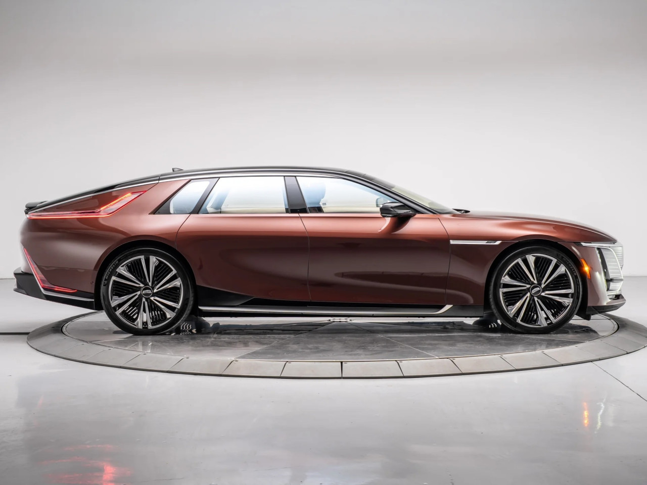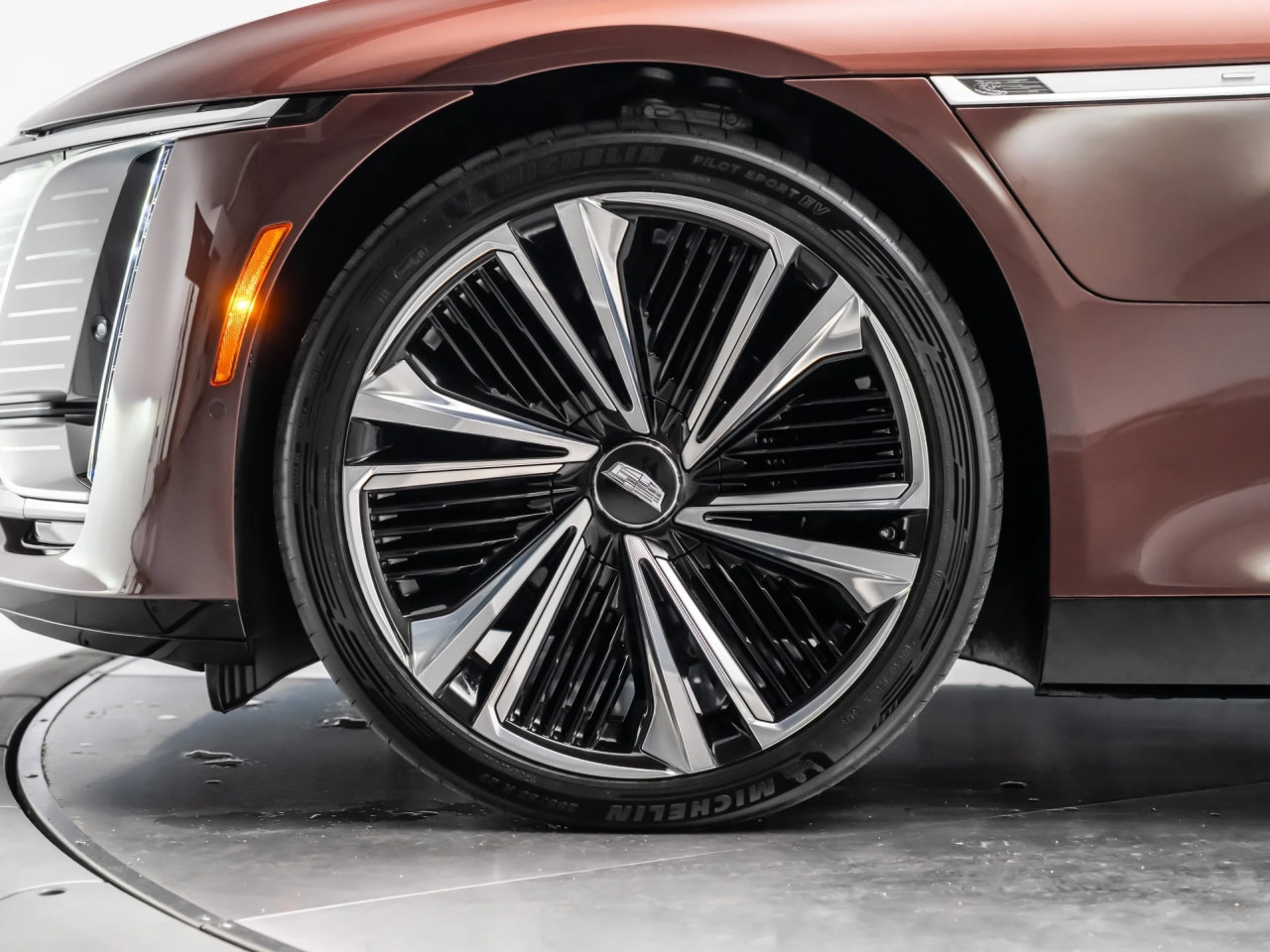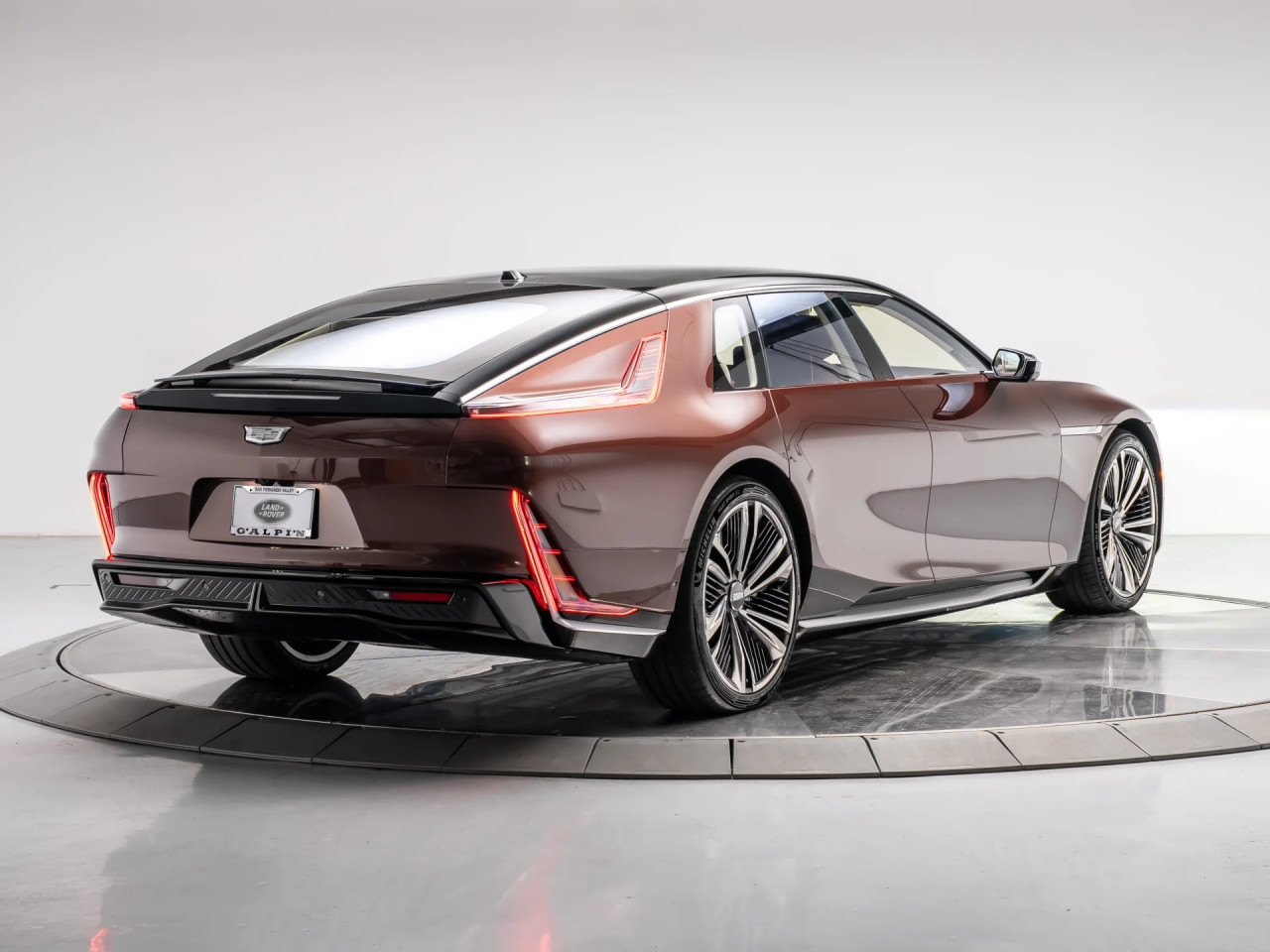 Електрическият флагман на Cadillac е базиран на платформата GM Ultium и използва два електромотора – по един на всяка ос. Системната мощност достига 665 к.с., а въртящият момент е 876 Нм. Ускорението от 0 до 97 км/ч отнема около 3,7 секунди, а максималната скорост е ограничена до 209 км/ч. Батерията с капацитет 111 кВтч осигурява заявен пробег до около 488 км.