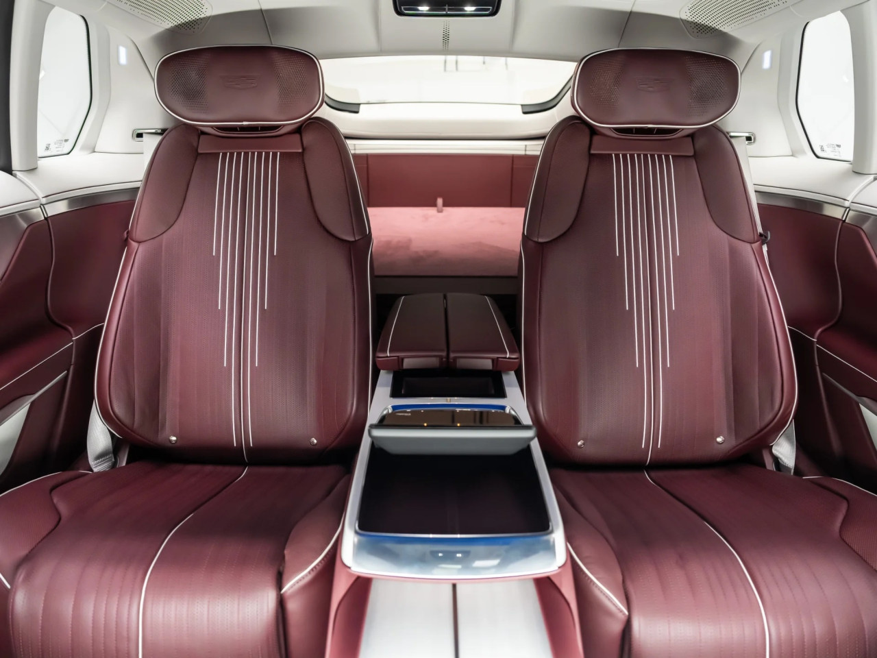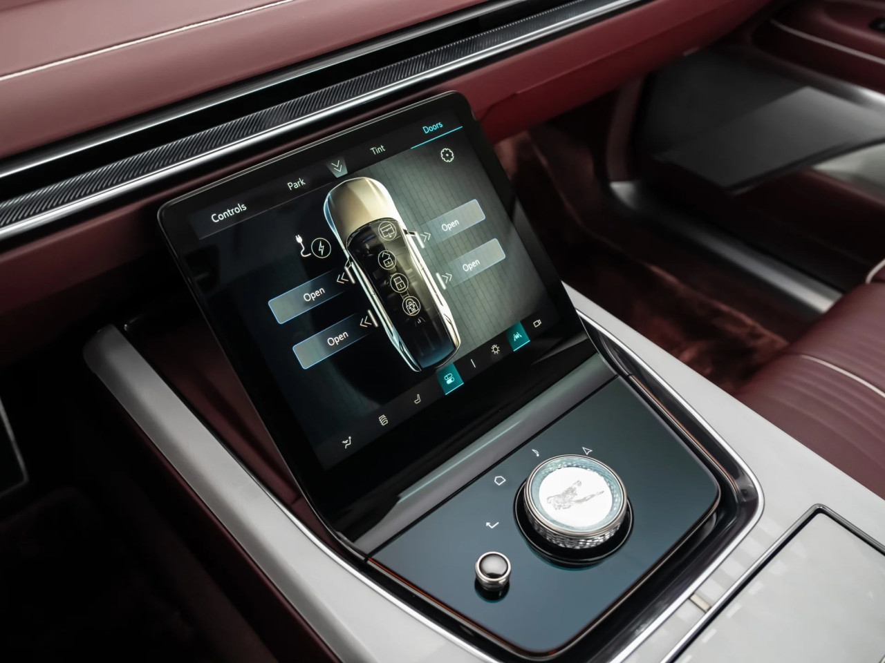 Интериорът е доминиран от огромен 55-инчов дисплей, който се простира от колона до колона. Покривът е със „смарт“ стъкло с четири независими зони за регулиране на светлината, а вратите се отварят с бутон вместо традиционни дръжки. Автомобилът стъпва на 23-инчови ковани джанти със самоуплътняващи се гуми Michelin Pilot Sport EV.