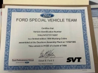 Ford произвежда над 28 000 броя Mustang Cobra между 1996 и 1998 г., а конкретният екземпляр е № 1 595 от общо 7 459 произведени през 1996 г. Под капака работи 4,6-литров атмосферен V8 с 305 к.с. и 410 Нм. Според заводските данни моделът ускорява до 100 км/ч (60 mph) за 5,9 секунди и преминава 400-метровата отсечка за 13,99 секунди – характеристики, които остават впечатляващи и днес.