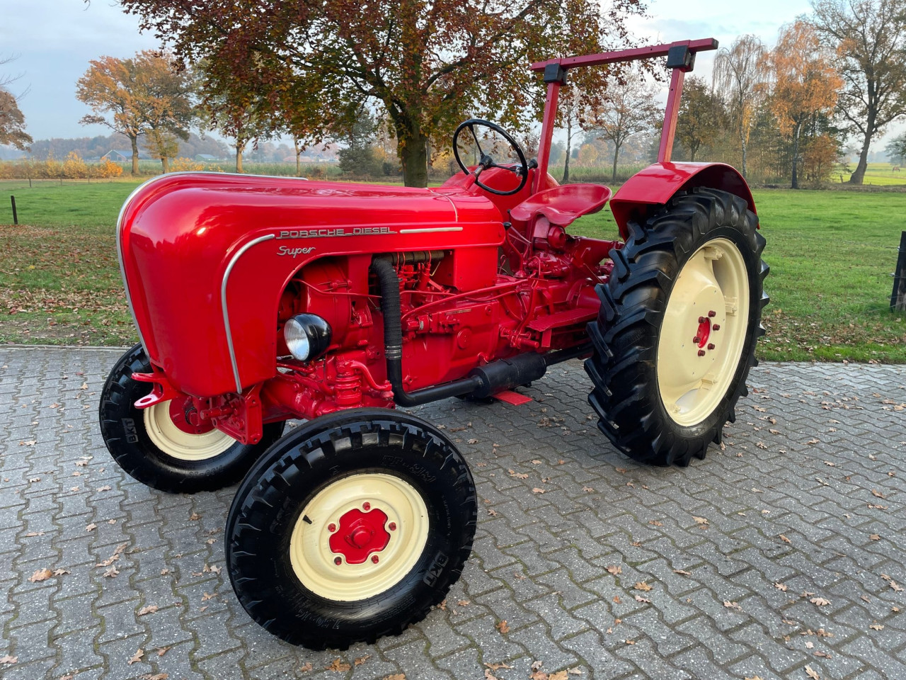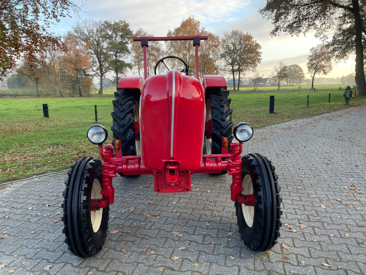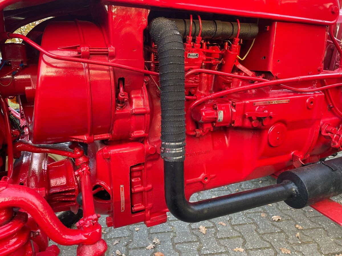 Редкият трактор Porsche 308N Super LWB блести в червено и с трицилиндров двигател