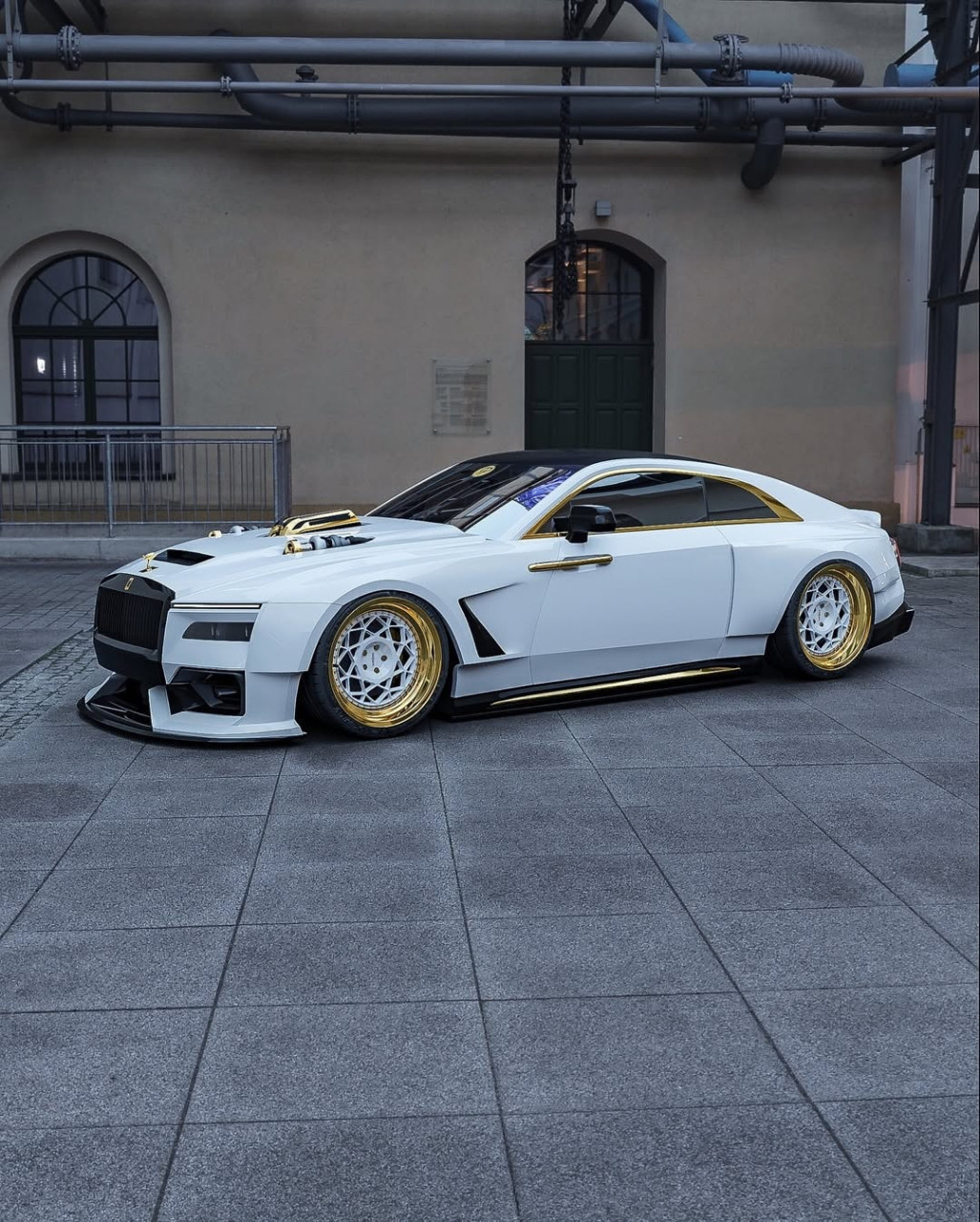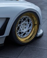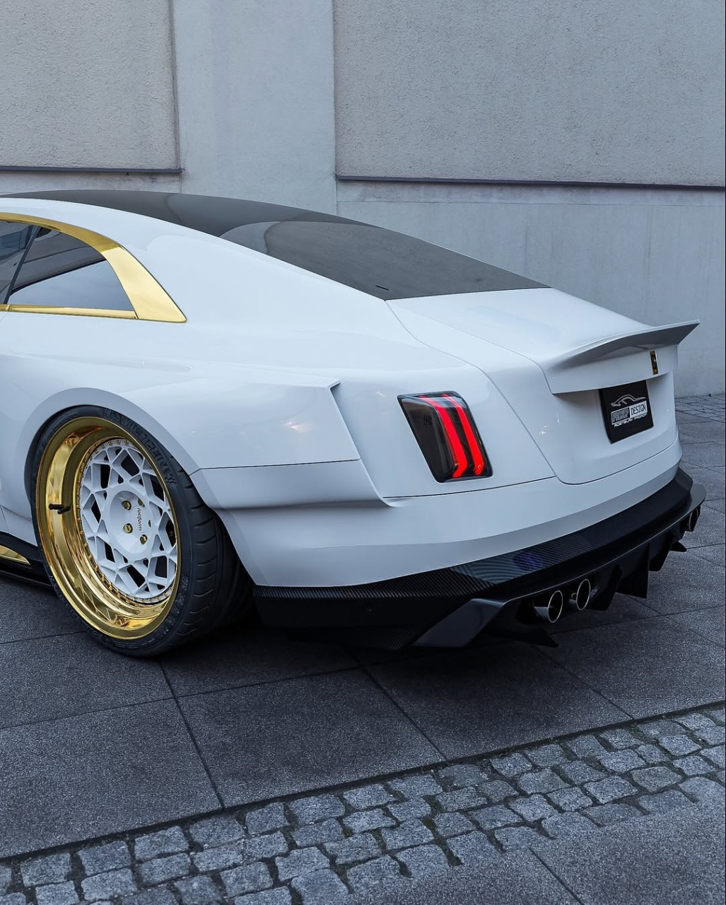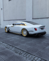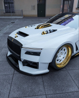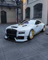 Проектът включва разширения на калниците отпред и отзад, добавки по праговете, допълнителни елементи отпред и отзад, по-ниска стойка и много хромирани акценти. Те контрастират с бялата каросерия и черни детайли. Джантите са в двуцветна схема, комбинираща бяло и златисто, а стъклата са тонирани.