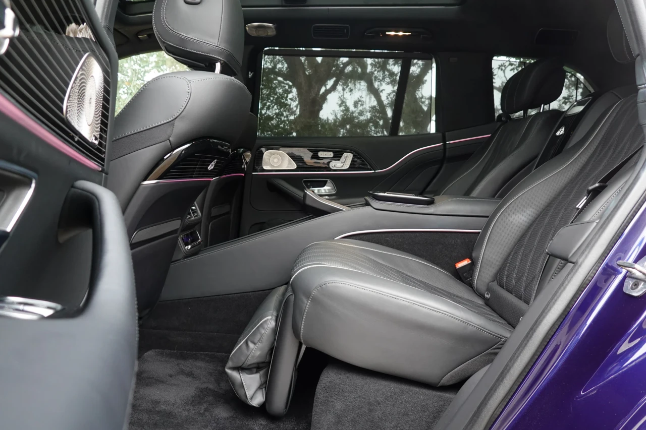 Има и забележки. Тъчпадът на централната конзола, наследен от стандартния GLS, остава по-скоро излишен и само подчертава неинтуитивните менюта. Много по-лесно е просто да използвате тъчскрийна – или да оставите това на шофьора, докато вие се излежавате отзад с вдигнати поставки за крака.