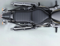 Двигателят е монтиран в стоманена тръбна гръбначна рама. Отпред работи 43-мм телескопична вилка с 120 мм ход. Задният край използва двойни амортисьори с 90 мм ход. Моделът се движи на характерните за марката колела. Максималното допустимо тегло е 429 кг.