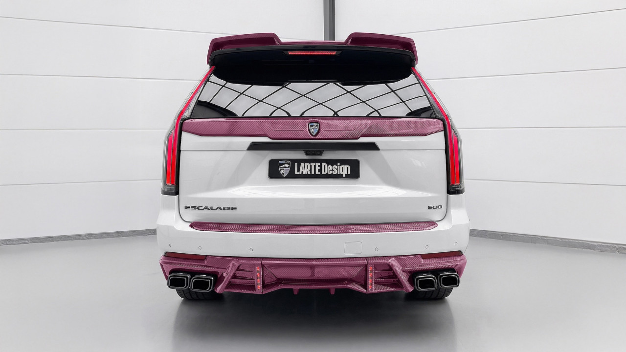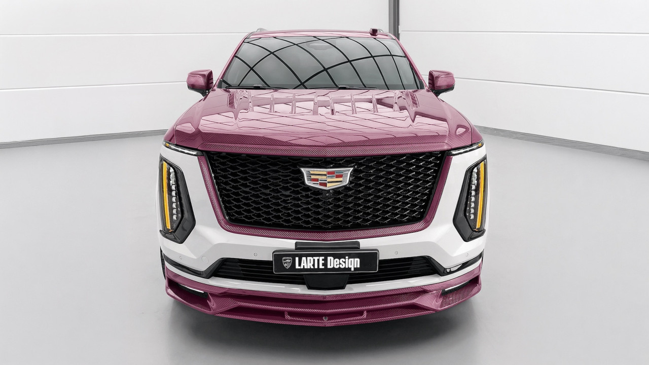 Larte Design направи нещо, което трудно може да бъде подминато – превърна Cadillac Escalade в розов карбонов шоу-автомобил, който изглежда като експонат от изложба, но запазва напълно своята функционалност за всекидневие.