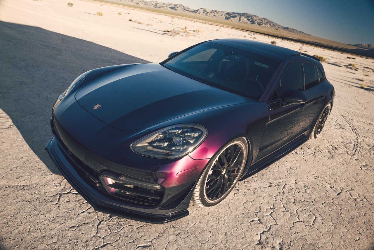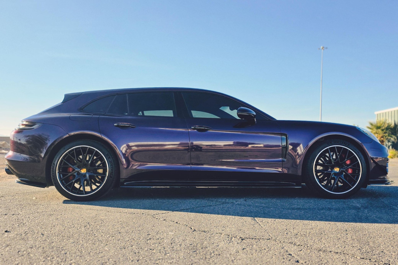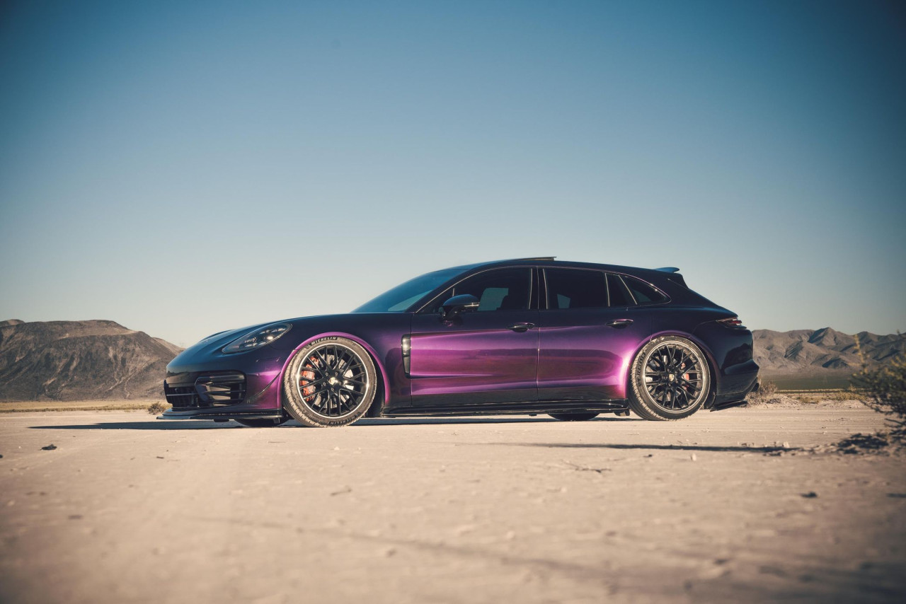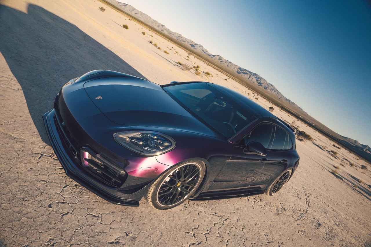 Едва под 100 бройки от Porsche Panamera Turbo Sport Turismo са доставени в САЩ. Сега един от тях се появи на вторичния пазар с INOZETEK Metallic Midnight Purple фолио върху оригиналния Jet Black Metallic. Черните джанти и червените спирачни апарати подчертават агресивния стил.