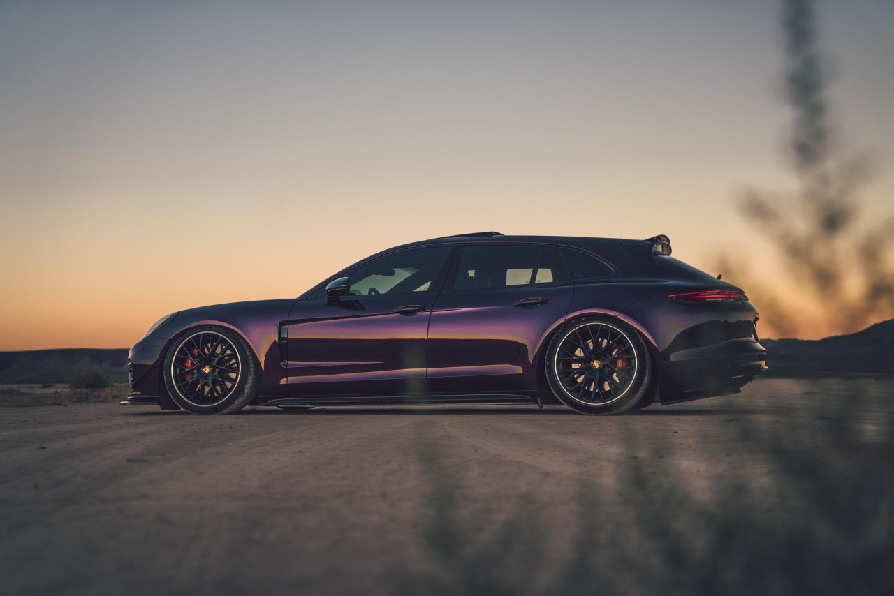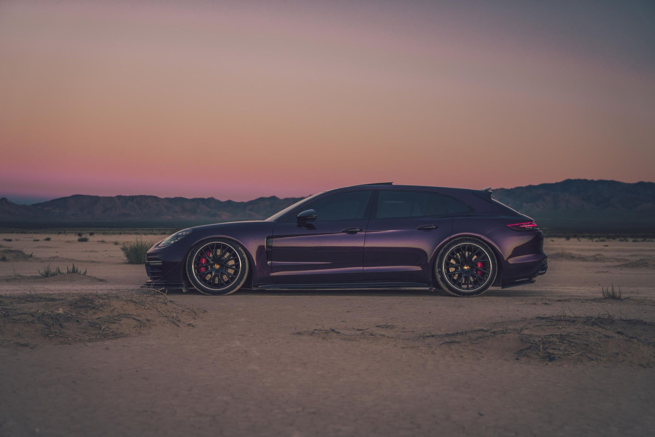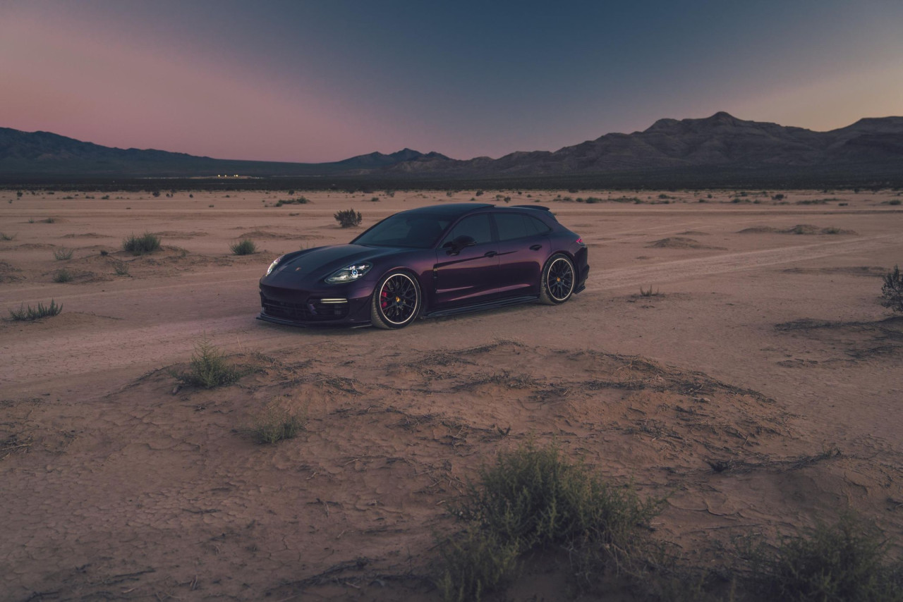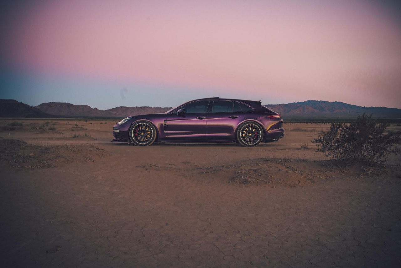 Едва под 100 бройки от Porsche Panamera Turbo Sport Turismo са доставени в САЩ. Сега един от тях се появи на вторичния пазар с INOZETEK Metallic Midnight Purple фолио върху оригиналния Jet Black Metallic. Черните джанти и червените спирачни апарати подчертават агресивния стил.