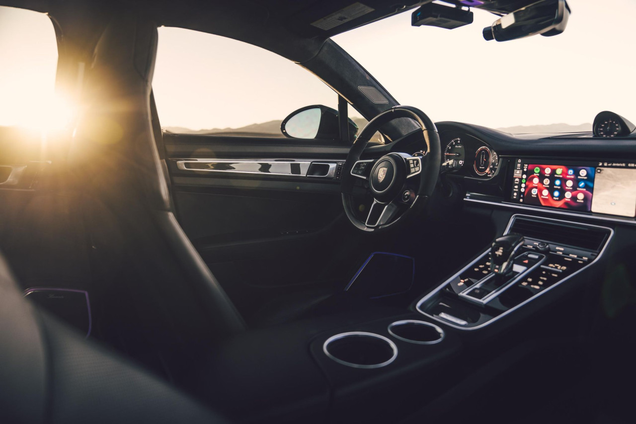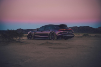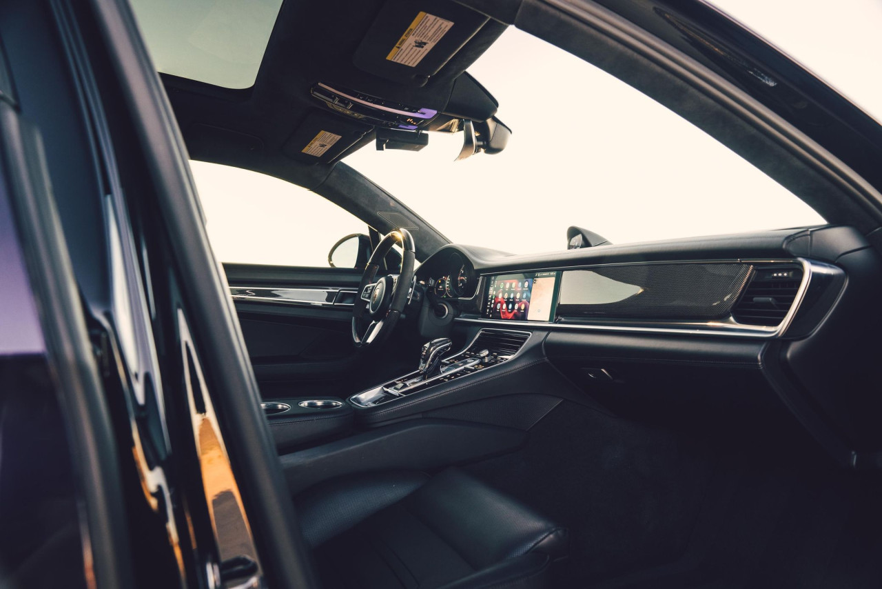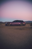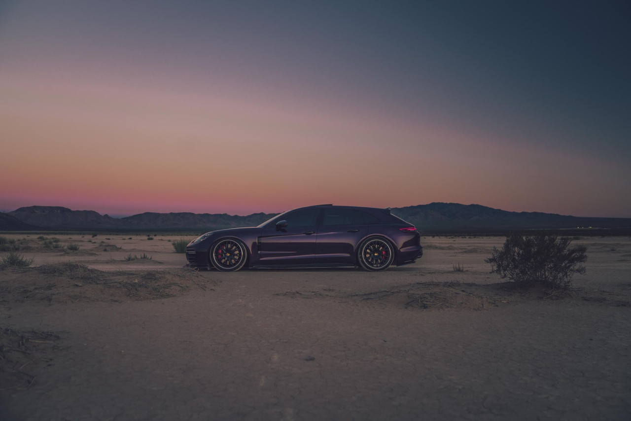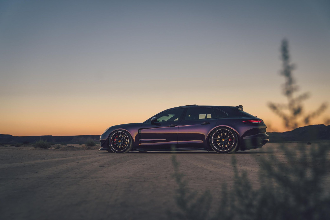 Едва под 100 бройки от Porsche Panamera Turbo Sport Turismo са доставени в САЩ. Сега един от тях се появи на вторичния пазар с INOZETEK Metallic Midnight Purple фолио върху оригиналния Jet Black Metallic. Черните джанти и червените спирачни апарати подчертават агресивния стил.
