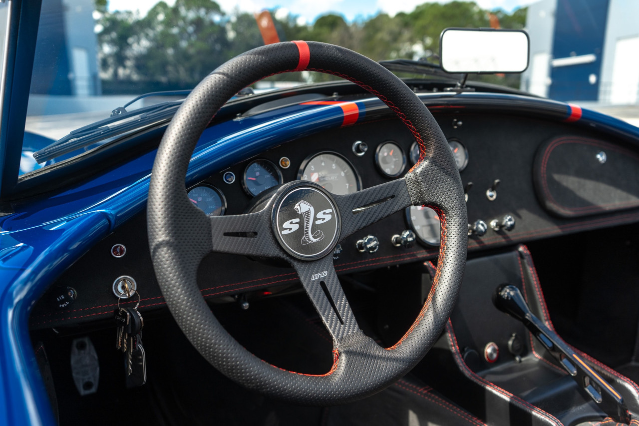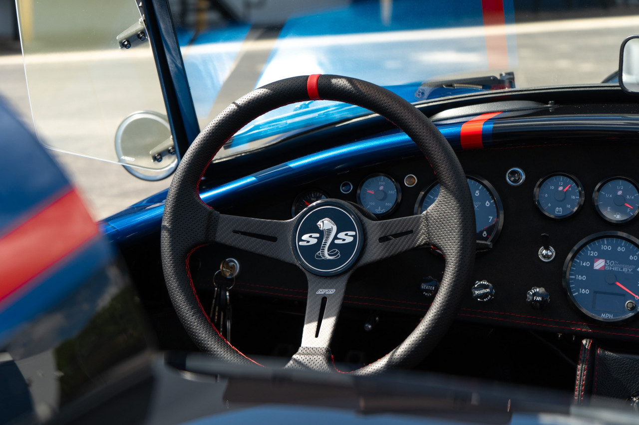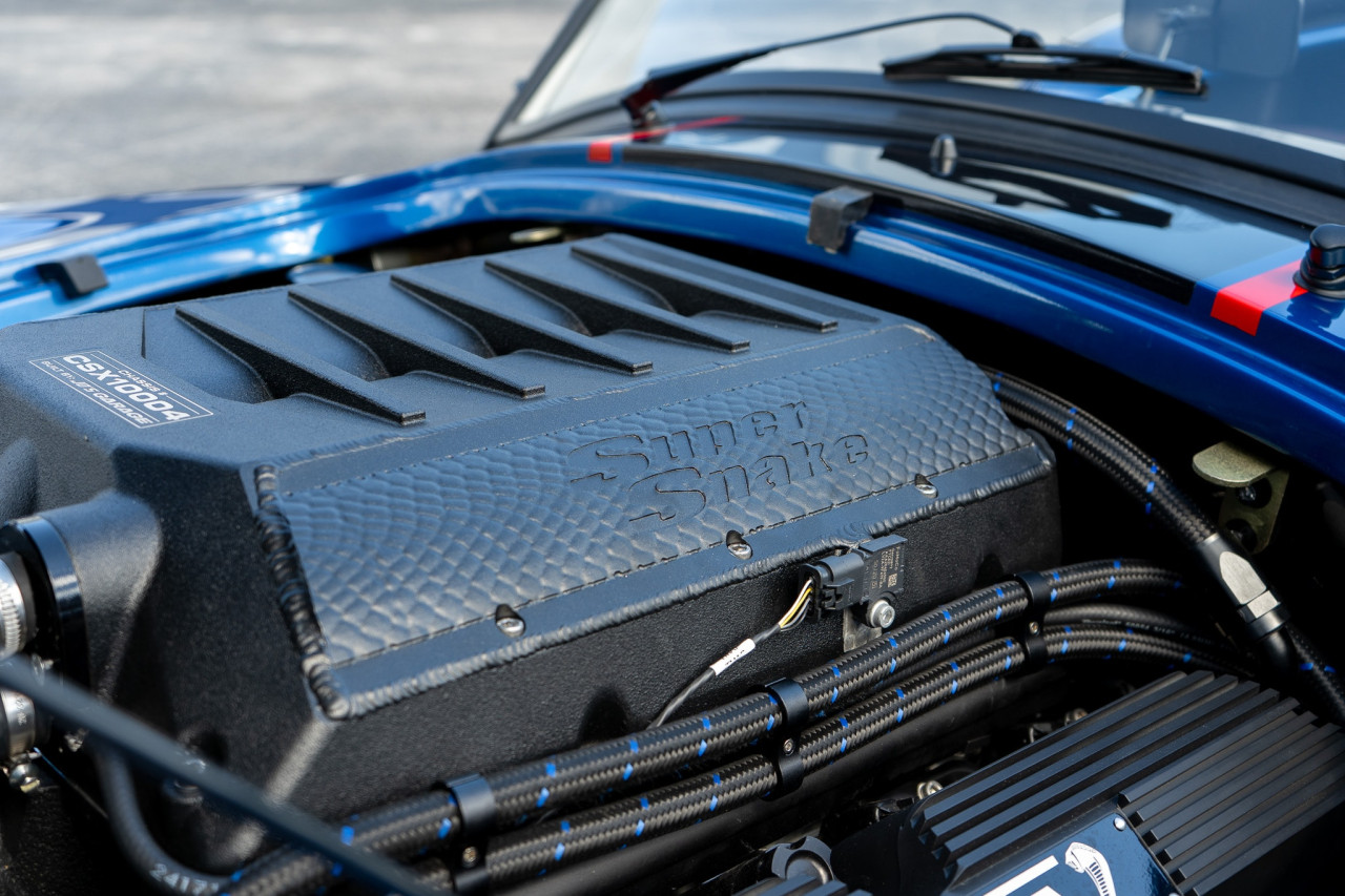 Кабината предлага кожа или Alcantara по избор и контрастен шев. Таблото напомня оригинала, но инструментите са съвременни. Всеки автомобил носи номерация CSX10000, емблеми Super Snake и серийна плака. Опциите включват blackout пакет, Lexan предно стъкло, климатик и колани тип състезателни.