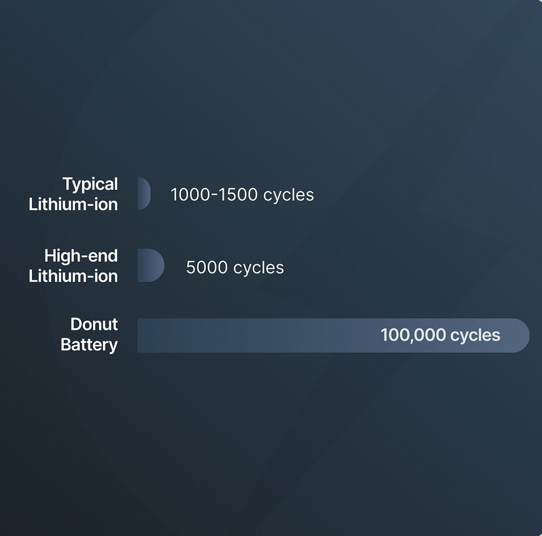 В началото на 2026 г. Donut Lab привлече внимание на CES с твърдението, че има „готова за производство“ твърдотелна батерия, предназначена за електрическия мотоциклет Verge TS Pro. Компанията обещава впечатляващи характеристики: енергийна плътност 400 Wh/kg – почти двойно спрямо Tesla 4680, пълно зареждане за 5 минути, живот от 100 000 цикъла и по-ниска цена на производство от литиево-йонните клетки. Всичко това бе представено чрез кратко видео, без допълнителни доказателства.
