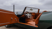 Автомобилът има металикова британска зелена боя, която идеално се съчетава с богатия тъмно кафяв интериор и жълти фарове за мъгла. Функционалните огледала тип „куршум“ допълват стила на Jaguar-a. Въпреки че е с отворен връх, ECD създаде персонализиран подвижен твърд покрив, което го прави подходящ за всякакви метеорологични условия.