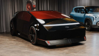 Този концепт се нарича Обсидиан и изглежда като нещо от ретро-фантастично бъдеще, обещано през 80-те години. Лицето с формата на клин е естествена еволюция на Ioniq 5, като пикселните светлини са интегрирани в плоския преден панел. Основната цел е максимизиране на пространството в купето, с плосък покрив завършващ във фастбек, което осигурява достатъчно пространство за главата на пътниците.