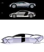 Визуализациите показват дизайн, описан като „готов за 2030-те“, с големи алуминиеви джанти, остри линии и страничен въздухозаборник, напомнящ характерния черен елемент при Audi R8. Авторът обаче е показал само три гледни точки, без интериор, което означава, че няма информация дали проектът е замислен като електромобил, електрифициран модел или спортен автомобил с ДВГ.