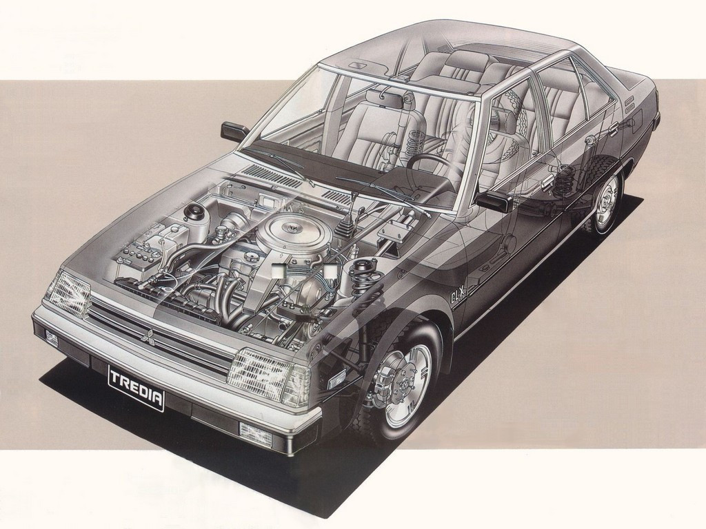 Появил се през 1982 г., Tredia е позициониран между Lancer и Galant като практичен семеен автомобил с предно предаване. Mitsubishi Tredia се предлага с различни бензинови двигатели и дори турбо версии, но истинската му отличителна черта не е моторът – а трансмисията. Освен стандартните 5-степенни и автоматични варианти, моделът предлага нещо уникално: Super Shift – 8-степенна механична кутия.