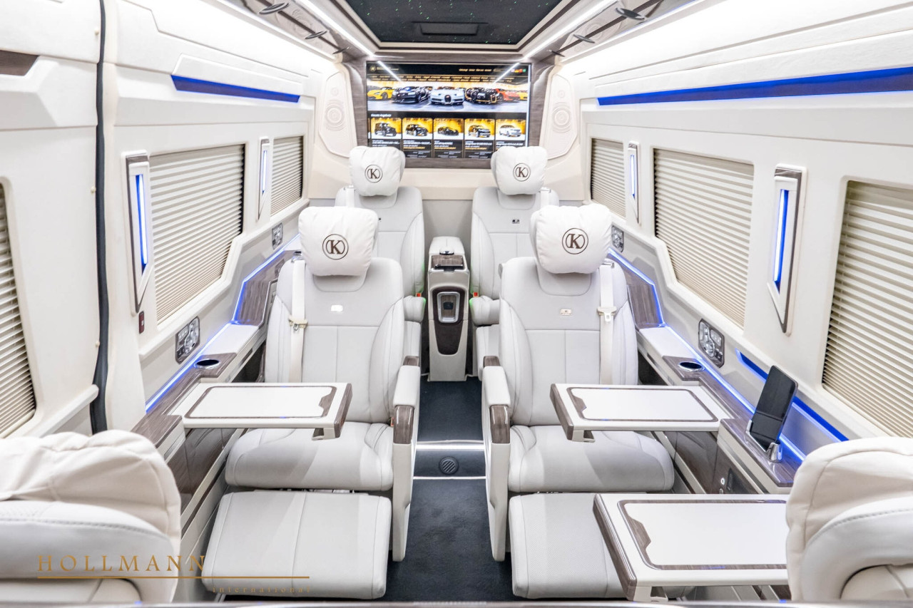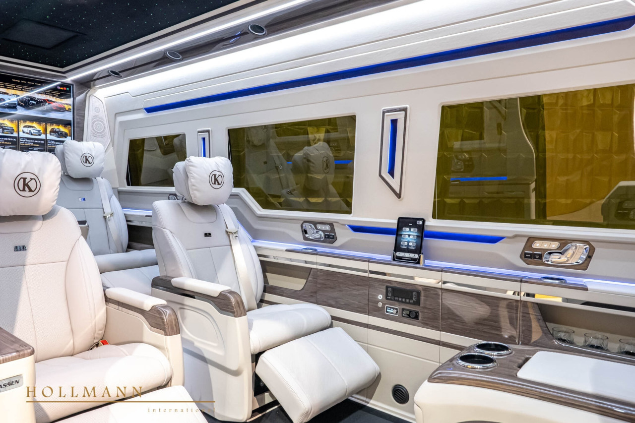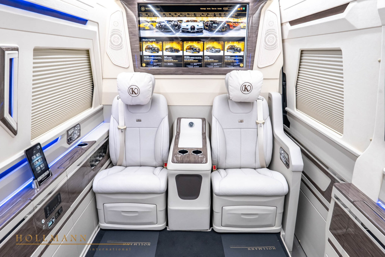 Крайният етикет — 541 450 EUR — поставя Sprinter-а рамо до рамо с напълно оборудван Cullinan. Разликата е, че ванът предлага повече места, две големи телевизора и множество бизнес удобства. Обявата е публикувана в Hollmann International.