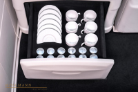 Оборудването включва още помощно отопление, камери отпред и отзад, автоматичен климатик, кожен волан, дървени елементи, USB портове и електрически маси. Зад двойните задни врати има пространство, което кемпер обществото нарича гараж.